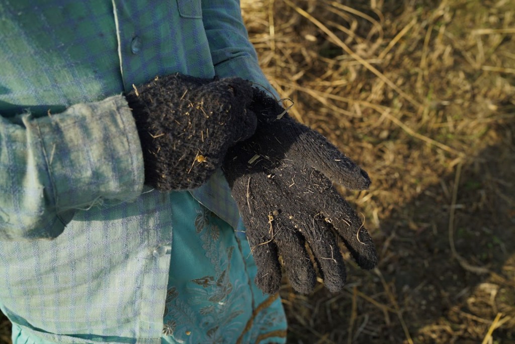 Sudharshana, 19, a Dalit woman and farm labourer toiling the land in over 50 degrees celsius (122 degrees fahrenheit) temperatures, protects herself from the scorching heat in India that kills hundreds every year. The winter gloves act as a reminder that we fail to provide our own “low caste” communities with safety gears, or early warning signals, because some lives (especially those of the “untouchable” women) are more disposable than others.