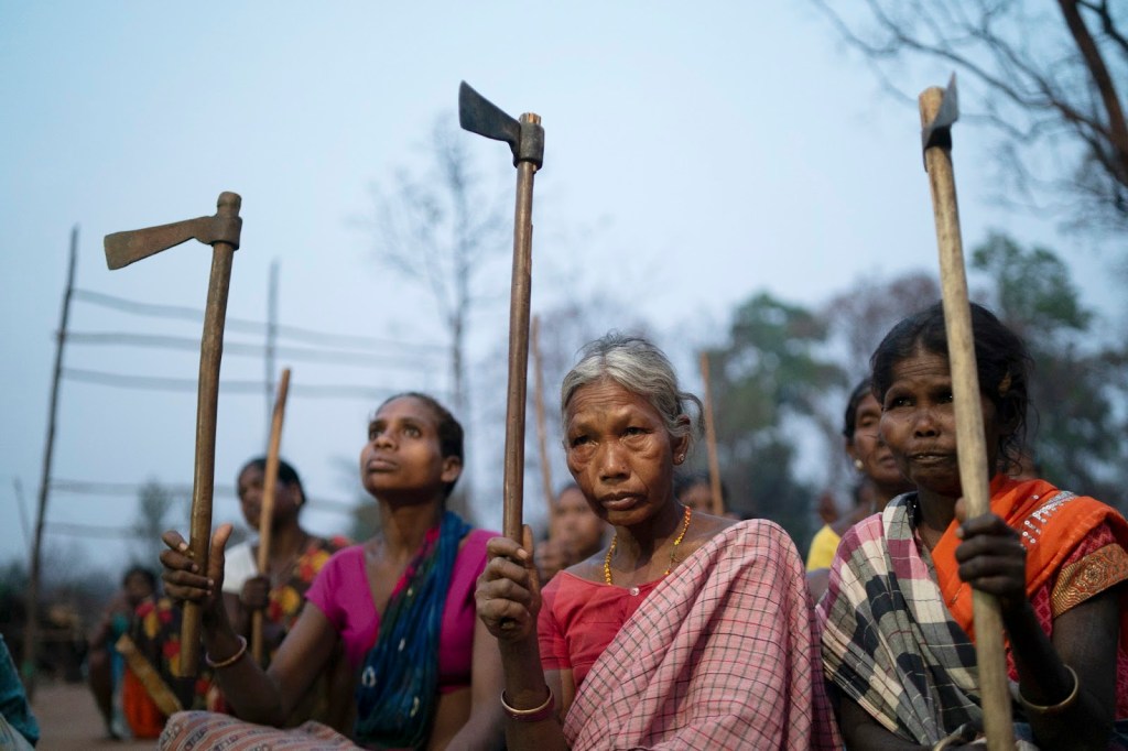 This photograph was taken in Central India’s Chhattisgarh at one among the 40 ongoing protest sites where the villagers, mostly indigenous and Dalit women, protest the illegal mining of iron from within their forests.